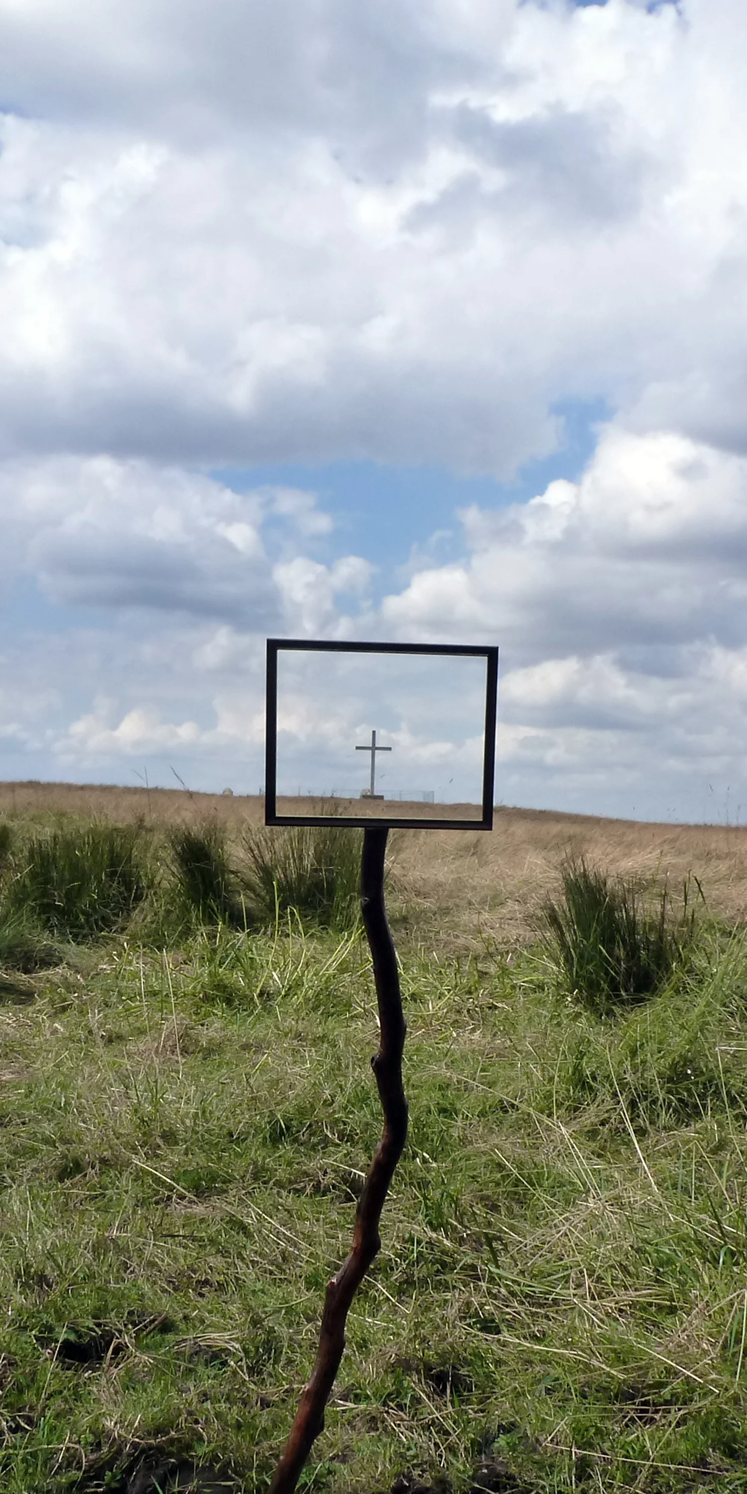Mark attached 10 picture frames to fence posts and sticks in the ground in a circular walk from the Abbey ruins. The route followed the river Bure to the south-east corner, along the boundary ditch, finishing with a view across the meadow to the Abbey.